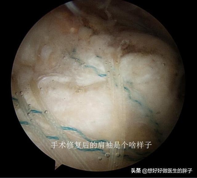 Si la coiffe des rotateurs est déchiréeElle est relativement petite et la perte de fonction articulaire du patient n'est pas particulièrement grave.Le processus peut être exécutéconserverTraitement. Et si la RMN révèle肩袖La déchirure est plus importante et laLa perte de fonctionnalité est également particulièrement visibleLe patient a été incapable d'effectuer des activités normales au niveau de l'articulation de l'épaule, ce qui a gravement affecté sa qualité de vie, et le patient a été incapable d'effectuer des activités au niveau de l'articulation de l'épaule.Le patient éprouve à nouveau le désir subjectif de résoudre le problème.L'image ci-dessous montre la rupture de la coiffe des rotateurs au microscope et l'imagerie après la suture, de sorte que la fonction du patient sera rétablie après une période de rééducation et d'exercice.