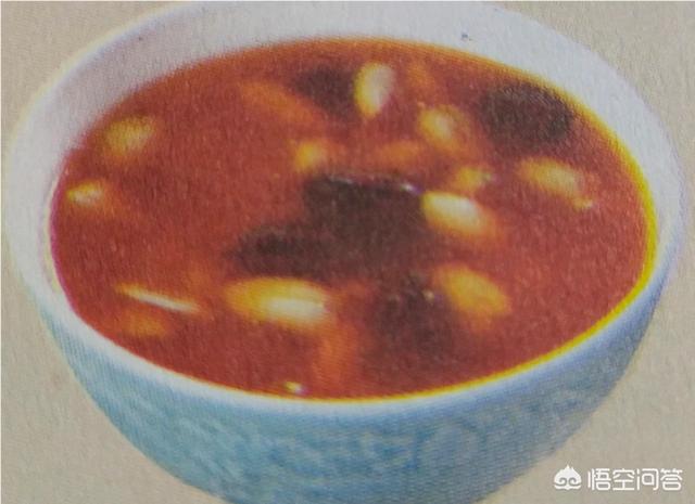 Deuxièmement, les dattes rouges sèches après avoir été lavées, trempées dans de l'eau tiède, et la peau des arachides ensemble dans la marmite, verser l'eau trempée dans le riz aux arachides, puis ajouter la bonne quantité d'eau, faire frire à petit feu pendant une demi-heure, retirer les vêtements des arachides, ajouter la bonne quantité de sucre roux peut être.