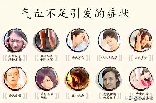 Les cheveux dont le qi et le sang sont insuffisants sont secs, tombent, sont jaunes et blancs, ont des pointes fourchues, tandis que les cheveux dont le qi et le sang sont suffisants sont noirs, épais et soyeux ; les yeux dont le qi et le sang sont insuffisants sont troubles, jaunes, injectés de sang, ont de grandes poches sous les yeux, sont secs, ont des paupières lourdes, tandis que les yeux dont le qi et le sang sont suffisants sont grands, brillants et maladroits ; la peau dont le qi et le sang sont insuffisants est rugueuse, terne, sombre, jaune et tachetée, tandis que la peau dont le qi et le sang sont suffisants est blanche, brillante, élastique, et n'a pas de rides indésirables, Il n'y a pas de longues taches ; l'insuffisance de qi et de sang n'a pas de couverture d'ongle de type croissant de lune blanc. Si vous avez suffisamment de Qi et de sang, vous aurez des ongles blancs en forme de croissant. Si vous avez un Qi et un sang insuffisants, vous aurez des difficultés à vous endormir, vous vous réveillerez facilement, vous urinerez la nuit, vous respirerez bruyamment ou ronflerez facilement.