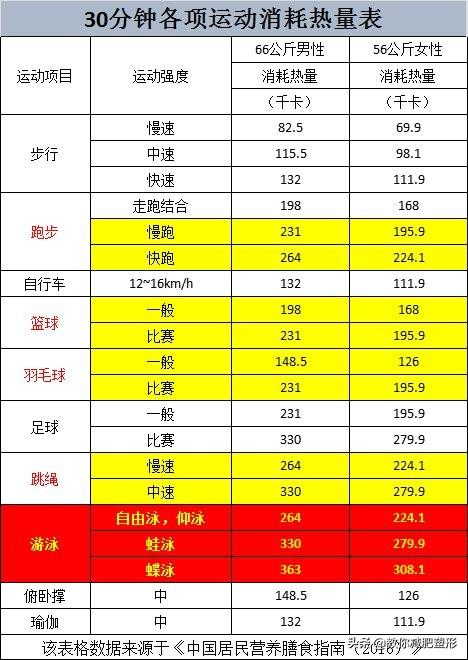 Calculons au niveau de 50 points (sur 100 points) du score de saut à la corde à mi-parcours, c'est-à-dire 100 sauts par minute et 1 000 sauts par jour pendant environ 10 minutes. D'après le tableau ci-dessous, nous savons qu'un homme de 66 kg brûle 330 kcal pour 30 minutes de saut à la corde à vitesse moyenne ; une femme de 56 kg brûle 279,9 kcal pour 30 minutes de saut à la corde à vitesse moyenne. En d'autres termes :