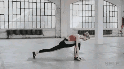 1. se stabiliser en position de planche oblique avec les deux mains en appui
