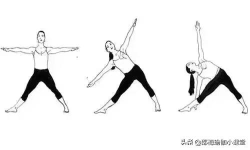 3, le pied droit vers l'extérieur pour ouvrir, le pied gauche à travers le corps vers le côté droit de l'expiration d'abord dans un style triangulaire 👇