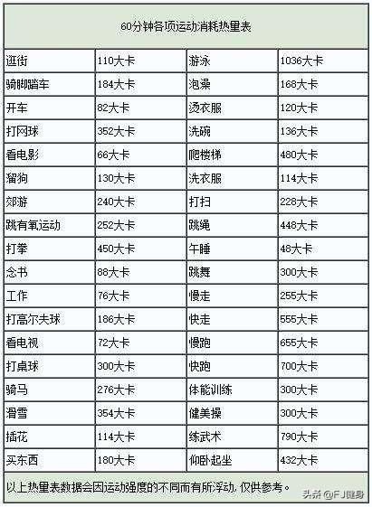 3 : Après l'entraînement musculaire, faites du cardio. Vous pouvez courir pendant 30 minutes. Bien entendu, vous pouvez choisir votre exercice préféré pour vous entraîner. Votre consommation quotidienne d'exercice peut également atteindre 250 à 500 calories de consommation d'énergie. Je joins également un tableau des dépenses énergétiques liées à l'exercice physique.