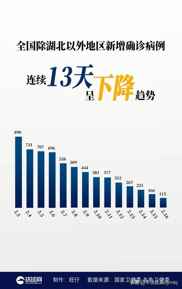 Le nombre de nouveaux cas confirmés de la maladie dans l'ensemble du pays, à l'exception du Hubei, a diminué pendant 13 jours consécutifs (du 3 au 16 février). À l'exception du Hubei, il n'y a eu que 115 nouveaux cas confirmés de la maladie hier.