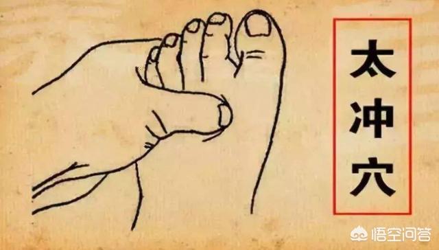 Le point Tai Chong est situé sur le dos du pied, dans l'espace entre le gros orteil et le deuxième orteil vers le haut, à 1,5 cm de dépression, c'est le méridien syncopal du foie du pied sur le point. Avant de masser ce point de santé, trempez vos pieds dans de l'eau chaude pendant environ 10 minutes, puis poussez et pétrissez avec vos pouces du bas vers le haut pendant 3 minutes.