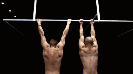 Vous trouverez ci-dessous deux praticiens du fitness effectuant une séance de tractions avant et arrière, ce qui vous permettra de comprendre clairement la stimulation profonde et complète des groupes musculaires du dos que ce mouvement procure, et de ressentir intuitivement les résultats étonnants que les exercices de tractions peuvent apporter.