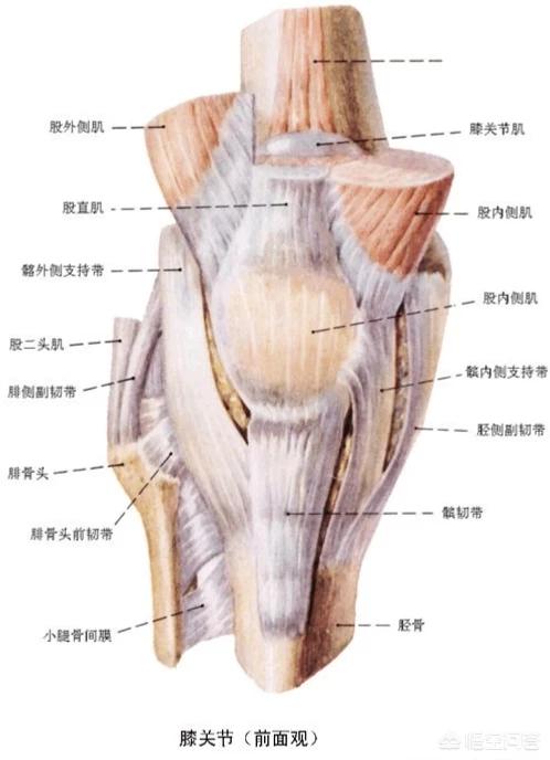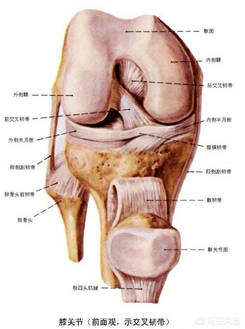 L'articulation du genou est constituée du fémur, du tibia, de la rotule et du péroné, et les muscles et tendons environnants sont principalement le quadriceps et les muscles postérieurs de la cuisse, les ligaments collatéraux médial et latéral, les ligaments croisés antérieur et postérieur, et les ménisques médial et latéral.