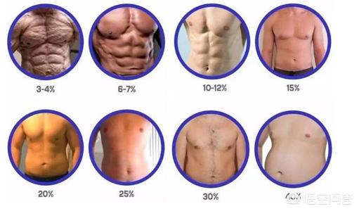 Dans le même exemple, avec un poids corporel de 100 kg, le pourcentage de graisse corporelle d'une personne en bonne forme physique est de 30 %, soit un taux de graisse corporelle de 30 kg. 20 kg de poids corporel sont ensuite perdus grâce à un entraînement musculaire, à une activité cardio appropriée et à un régime alimentaire scientifique. Ces 20 kg de poids corporel peuvent représenter jusqu'à 18 kg de graisse, soit une perte musculaire de 2 kg. Le changement dans le pourcentage de graisse corporelle est alors le suivant : (30-18)/80=15%. Ce changement est maintenant évident, et comme vous pouvez le voir sur le graphique ci-dessus, ce pourcentage de graisse corporelle est à peine suffisant pour voir les prémices des abdominaux ci-dessus.