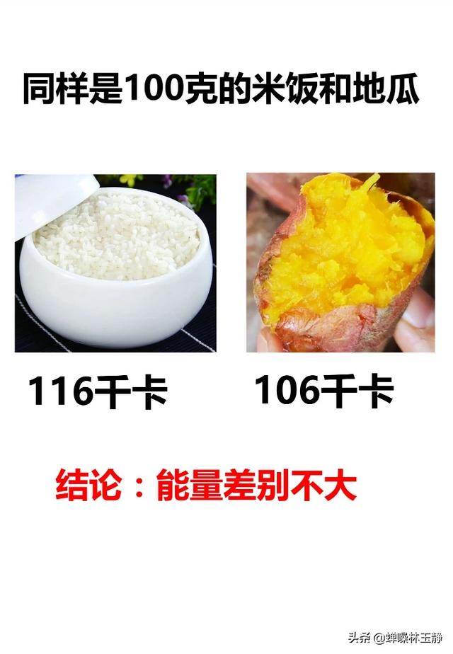 Prenons l'énergie des patates douces, chaque 100 grammes d'énergie est d'environ 106 kcal, avec le même poids de riz est presque le même (116 kcal), donc manger des patates douces pour couper une partie du riz ou directement avec des patates douces au lieu de l'aliment de base, de sorte que l'alimentation n'est pas facile à faire grossir.