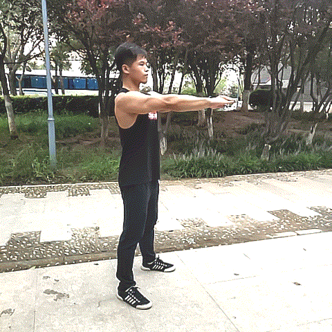 Normes de mouvement :Les pieds sont écartés de 1 à 1,2 fois la largeur des épaules, les orteils sont légèrement tournés vers l'extérieur, les hanches et les genoux sont fléchis en même temps afin de trouver la sensation d'assise des fesses vers l'arrière. Faites attention au processus de vitesse régulière, à la force de la hanche pour faire pivoter les cuisses vers l'extérieur, au poids réparti uniformément sur les orteils, l'extérieur du pied et le talon. Garder la plante du pied décollée du sol et trouver la sensation de tirer le pouce vers le talon.