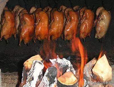 - Canard rôti au four suspendu.La méthode du "poêle suspendu" pour préparer du canard rôti, d'une part, le bois de fruit lui-même produira une combustion de benzopyrène ; d'autre part, la viande de canard par la température élevée de l'huile et de la graisse s'écoulant vers le feu, ces graisses dans la réaction de pyrolyse à haute température ou de polymérisation par la chaleur produiront également du benzopyrène, et ensuite ces benzopyrènes avec la suie. Le benzo(a)pyrène est ensuite attaché au canard rôti avec la suie.