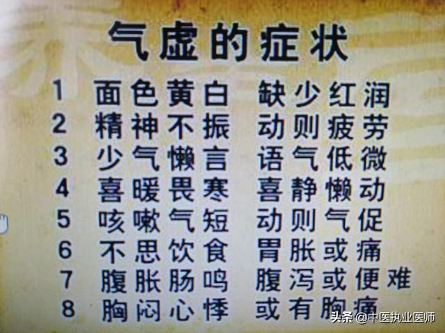 La huitième est une déficience et une faiblesse du qi, qui est souvent causée par une mauvaise alimentation, le post-partum, la post-chirurgie, etc., ou des maladies à long terme qui entraînent une déficience du qi, ce qui peut conduire à la fatigue et à la lassitude ou à l'affaissement du qi moyen, y compris le prolapsus de certains organes, notamment le prolapsus gastrique, le prolapsus de l'utérus, etc.
