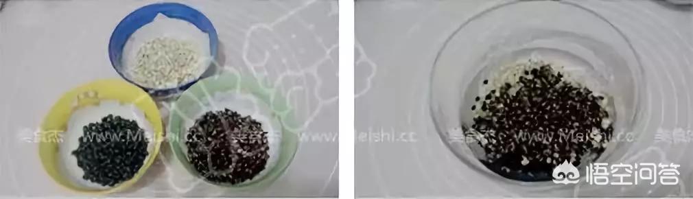 1. larmes de Job, haricots adzuki, haricots noirs, ces matières sont lavées et mélangées, trempées pendant une nuit (en été, j'étais dans la pièce climatisée en train de tremper).
