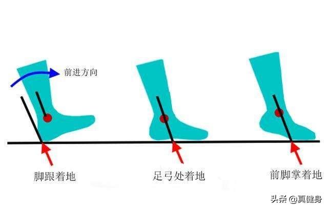 Bien sûr, quelle que soit la manière, la première fois que nous courons, il y aura un processus d'adaptation, et cette adaptation est notre corps automatiquement ajusté, le temps formera naturellement la posture de course appropriée, l'image suivante il y a plusieurs façons d'atterrir que vous pouvez voir ?