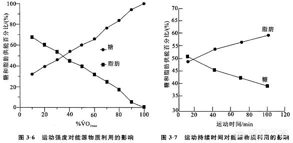 La figure 2 montre la relation entre l'intensité de l'exercice et le rapport entre la combustion des graisses et la consommation de glycogène dans le corps, avec l'extension de la durée de l'exercice, la consommation de graisse augmente progressivement, environ la moitié de la combustion des graisses et de la consommation de glycogène à environ 30 minutes, après quoi la consommation de graisse commence à augmenter et entre dans la durée optimale de l'exercice de perte de graisse, mais après un certain temps, la proportion de la consommation de graisse diminue, et dans la figure 1, environ 70-75 minutes dans la période de temps, la consommation de graisse montre une tendance nette à la baisse, ce qui n'est pas favorable à la perte de graisse à ce moment-là. la consommation de graisse montre une nette tendance à la baisse, ce qui n'est pas favorable à la perte de graisse à ce moment-là.