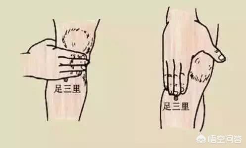 Méthode de massage : appuyer sur les points bilatéraux du pied Sanli avec le pouce ou l'index, le bout du doigt fixé à la peau ne bouge pas, de la pression légère à la pression forte, continue et régulière.