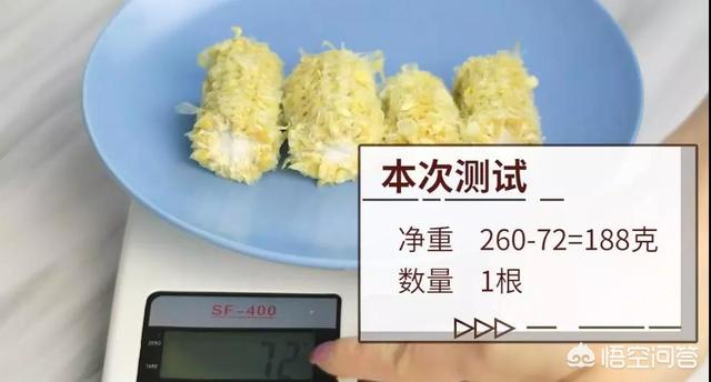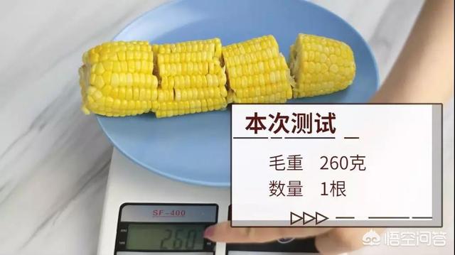 Tout d'abord, pesons le maïs que nous avons préparé cette fois-ci. Un épi de maïs de bonne taille avec les trognons pèse 260 grammes au total, et après avoir enlevé les trognons, les grains pèsent 188 grammes net.