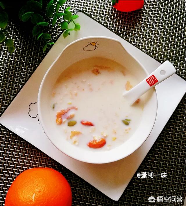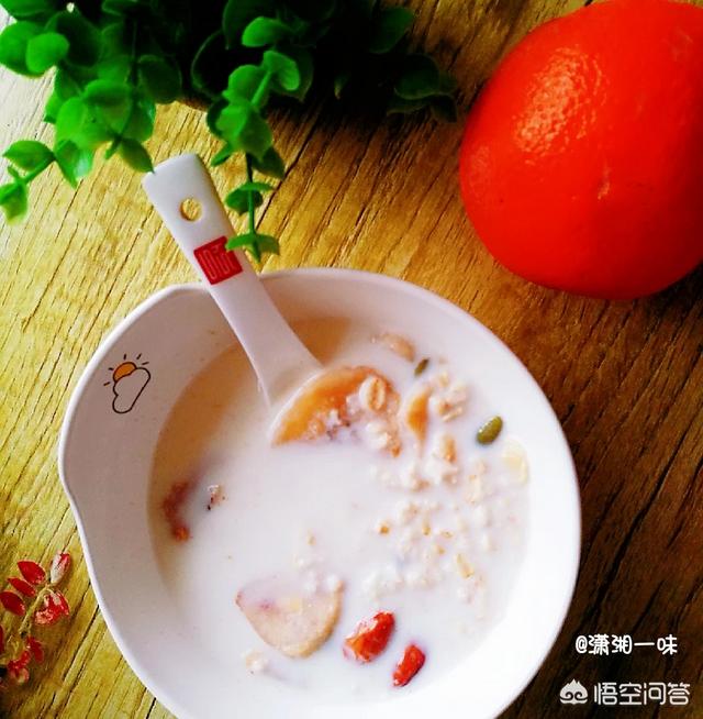 L'avoine, j'aime acheter des flocons d'avoine instantanés, les tremper dans l'eau bouillante pendant quelques minutes, ou les mettre dans le four à micro-ondes pour les réchauffer quelques secondes, la bouillie d'avoine sera prête, et pour que la température de la bouillie soit légèrement plus basse, ajouter 3 cuillères de lait en poudre pour mélanger un peu, c'est un bol de bouillie d'avoine au lait nutritif. Si vous faites un œuf poché, préparez quelques fruits, c'est le petit-déjeuner maison le plus simple, le moins spécialisé, le plus long et le plus complet sur le plan nutritionnel.