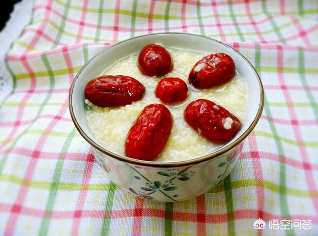 1. porridge aux dattes rouges et au milletMillet, dattes rouges. Laver et égoutter le millet dans la marmite, faire sauter à feu doux jusqu'à ce qu'il soit sec et qu'il dégage un bon parfum. Ensuite, mettre les dattes rouges dans le noyau, verser suffisamment d'eau froide, porter à ébullition à feu vif, puis laisser mijoter à feu doux jusqu'à ce que la bouillie épaississe.