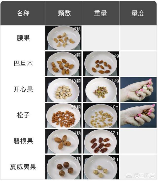 Vous pouvez vous référer au tableau ci-dessous, chaque portion contient environ 90 calories. Lorsque vous mangez des noix, leurs calories doivent être déduites du total des calories de la journée, c'est-à-dire que vous devez manger quelques bouchées de moins. En outre, les fruits à coque doivent être consommés en complément du repas, et non avec le repas principal.