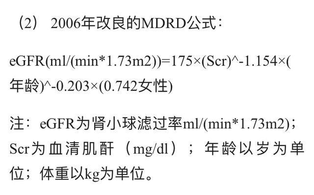 Le consensus chinois de 2014 recommande la formule MDRD modifiée développée par le Chinese Collaborative Group on Predicted Glomerular Filtration Rate en 2006, qui est applicable à la population chinoise, pour calculer le débit de filtration glomérulaire afin d'évaluer le degré de lésion rénale.