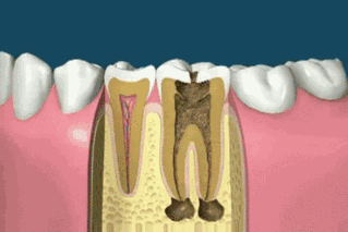 C'est ce qu'on appelle une carie. J'ai déjà eu une dent comme la vôtre, je n'ai rien senti au début et je n'ai pas pensé qu'il y avait un problème, et je n'avais mal qu'occasionnellement à l'arrière, je ne l'ai toujours pas pris au sérieux, et au moment où je suis retourné à l'arrière, chaque fois que je mangeais, c'était comme si je traversais un champ de mines, et ensuite je suis retourné pour voir qu'il était déjà trop tard, et à la fin j'ai dû subir un traitement radiculaire !