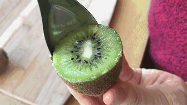 Enfin, j'aimerais partager avec vous une façon délicate d'éplucher un kiwi, comme le montre l'image 👇.