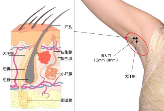 L'ablation visuelle directe par petite incision, peu invasive, est désormais reconnue comme une procédure radicale pour les odeurs axillaires. Ces dernières années, des études ont également confirmé que les injections topiques de toxine botulique pouvaient réduire la sécrétion des glandes sudoripares et atténuer ou éliminer les odeurs.