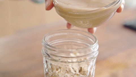 Votre petit-déjeuner se compose de flocons d'avoine trempés dans du lait écrémé, d'un œuf et de quelques légumes.