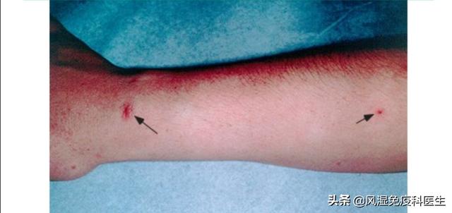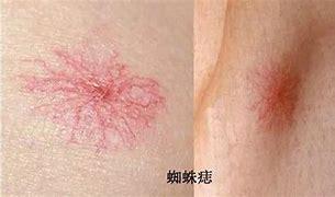 4. nævus arachnéen : il s'agit d'une lésion vasculaire rouge. Le centre du nævus est protubérant et de nombreux capillaires en forme de pattes d'araignée sortent dans toutes les directions. Lorsque l'on appuie sur la protubérance centrale avec l'extrémité d'un bâton fin, l'ensemble du nævus disparaît et réapparaît après l'avoir relâché. Ce symptôme précoce chez les patients atteints d'une maladie du foie peut être distingué des autres nævus vasculaires. Il est généralement causé par une diminution de la capacité du foie à inactiver les œstrogènes et par une augmentation des niveaux d'œstrogènes. Les hommes atteints de naevus en araignée doivent notamment prêter attention à l'examen de la fonction hépatique.
