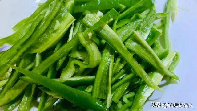 Le poivre vert contient une grande variété de vitamines, en particulier du carotène et de la vitamine C. Si le temps de cuisson est trop long, la vitamine C sera considérablement endommagée. Par conséquent, le poivre vert est râpé et frit rapidement dans de l'huile à haute température pendant environ 1,5 minute.