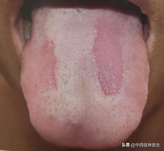 Par exemple, la langue en forme de carte est un gros morceau irrégulier de mousse de langue qui se détache faiblement, le bord de la mousse épaisse a des limites claires, en forme de carte, c'est une sorte de mousse qui s'écaille, elle est due à un manque de qi de l'estomac, reflétant une grave déficience de la rate et de l'estomac.