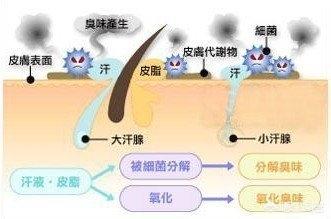 L'odeur de renard est principalement due à la sécrétion de substances collantes par les glandes sudoripares des aisselles qui, en présence de bactéries à la surface du corps, produisent des acides aminés à chaîne courte et de l'ammoniaque et dégagent une odeur particulière.