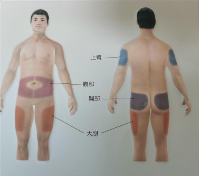 2, le point d'injection, en fonction de la vitesse d'absorption rapide à lente, le point d'injection est l'abdomen (5 cm à l'extérieur du nombril autour), le bras à l'extérieur, les cuisses à l'avant de l'extérieur, les fesses. N'oubliez pas de faire pivoter le point d'injection, il n'y a pas toujours de point d'injection.