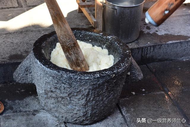 La difficulté de la digestion du riz gluant au premier niveau de la digestion physique, la bouche et l'estomac peuvent être digérés physiquement, mais les anciens intelligents ont également pensé à une autre façon de simplifier le premier niveau de digestion. Le riz gluant n'entre pas dans l'estomac avant la première utilisation d'un bâton de bois pour l'écraser.