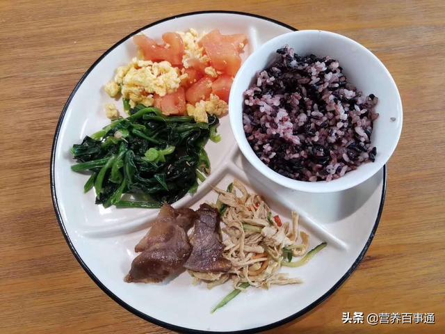 Voici un exemple : commencer par des légumes feuillus sautés → œufs brouillés avec des tomates → blanc de poulet en sauce froide ➕ viande en sauce avec du riz à grains mélangés