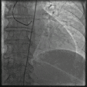 Un examen d'imagerie cardiaque consiste à insérer un cathéter très fin dans l'aorte et à injecter un produit de contraste dans la circulation sanguine aortique par un petit trou situé à l'avant du cathéter.