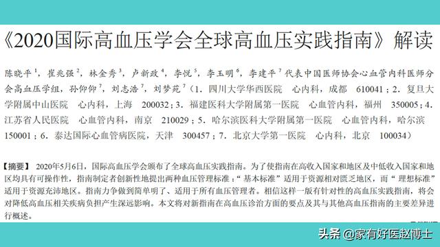 En ce qui concerne cette question, nous pouvons la mesurer par une méthode rétrospective. Récemment, la Société internationale d'hypertension a, pour la première fois, publié de manière indépendante un guide pratique mondial sur l'hypertension. Il y est clairement indiqué queIl existe trois groupes de personnes qui devraient commencer immédiatement à prendre des médicaments contre l'hypertension artérielle: