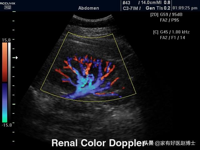 L'échographie des artères rénales est également connue sous le nom d'imagerie de flux par échographie Doppler couleur, qui évalue l'indice de résistance au flux sanguin dans les artères rénales. Il a été démontré que les lésions rénales dues à l'hypertension sont les premières à provoquer une augmentation de la résistance au flux sanguin dans les artères interlobaires du rein, et donc de l'indice de résistance au flux sanguin dans les artères rénales.L'indice de résistance au flux sanguin des artères interlobaires rénales évalué par échographie de l'artère rénale peut également déterminer les lésions rénales hypertendues précoces。