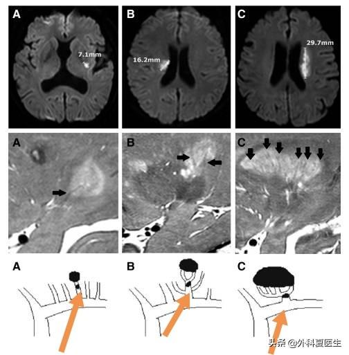 Tout d'abord, les vaisseaux sanguins cérébraux qu'il obstrue sont relativement petits, et la zone infarcie est également relativement petite.Il se produit généralement dans des vaisseaux de 100 microns et la zone d'infarctus, c'est-à-dire la taille de la lésion, est habituellement inférieure à 1 cm.