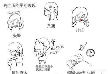 Les symptômes de l'hypertension artérielle sont généralement les suivants : vertiges, maux de tête, insomnie, acouphènes, panique, oppression thoracique, essoufflement, perte de mémoire, engourdissement des mains et des pieds, saignements fréquents des dents, saignements de nez, saignements sous les yeux, vision floue, etc. Si ces symptômes apparaissent, la tension artérielle est de deuxième ou troisième degré ou plus, et pour une période plus longue, il ne s'agit jamais d'une hypertension précoce.