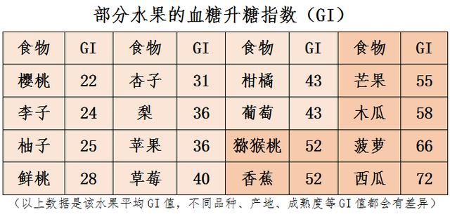 Certaines personnes demanderont, vous ne dites pas que les diabétiques devraient choisir des fruits à faible IG ? L'IG de la papaye n'est pas faible, mais les diabétiques peuvent quand même manger des fruits à indice glycémique élevé ? Alors, n'est-ce pas que les fruits à IG relativement élevé ne peuvent absolument pas être consommés par les patients diabétiques, et que les fruits à IG faible ne peuvent pas être limités ? En réalité, la glycémie postprandiale est liée non seulement à l'indice glycémique, mais aussi à la quantité totale de glucides contenue dans l'aliment. En d'autres termes, les fruits à IG élevé, si leur teneur en sucre est faible, n'ont pas un grand impact sur le taux global de sucre dans le sang, malgré leur conversion facile en sucre. Cela signifie qu'un patient diabétique ne doit pas seulement tenir compte de l'IG lorsqu'il choisit des fruits, mais aussi de la charge glycémique, ou CG, qui reflète l'effet de la quantité de glucides sur la glycémie. (GL <10为低GL食物,GL>20 pour les aliments à GL élevé.GL = IG x teneur réelle en glucides disponibles de l'aliment consommé/100 )