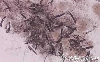 Méthode d'examen : extraire un peu de sébum directement de la bouche du follicule pileux ou utiliser une plaque d'acier pour racler un peu de sébum sur la lame avec une goutte de glycérol ou de paraffine, puis recouvrir d'une lamelle couvre-objet et presser légèrement, placer sous le microscope pour vérifier s'il y a des vers folliculaires.