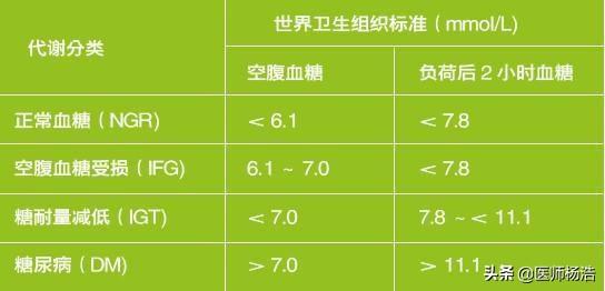 En présence de symptômes typiques du diabète, tels que manger, boire, uriner et perdre du poids de manière excessive, et d'une glycémie à jeun ≥ 7,0 mmol/L ou d'une glycémie deux heures après le repas (ou d'une glycémie aléatoire) ≥ 11,1 mmol/L, le diabète doit être considéré comme tel ; en l'absence de symptômes typiques du diabète, le diagnostic de diabète sucré doit être posé lorsque la glycémie dépasse les valeurs susmentionnées, mesurées deux fois au cours d'une même journée. Si la glycémie dépasse les valeurs normales, mais n'atteint pas encore les critères de diagnostic du diabète, il s'agit d'un prédiabète.