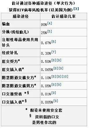 La présentation de cet article sur le risque d'infection par le VIH en fonction de divers comportements peut rafraîchir les connaissances de certains amis sur le SIDA. Il convient toutefois de rappeler que les données ci-dessus ne représentent que le risque d'un seul acte, et qu'il ne faut pas sous-estimer le risque cumulé de comportements XING impurs et d'expositions professionnelles telles que le travail médical et policier. Les comportements à haut risque tels que la transmission sanguine et la transmission mère-enfant peuvent être réduits à un risque faible grâce à des réglementations raisonnables et à des mesures de protection et d'interruption ; et divers comportements XING qui sont intrinsèquement à faible risque peuvent également être réduits à un risque négligeable si les préservatifs sont utilisés correctement.