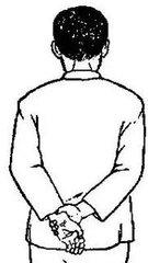 En cas de limitation de la rotation interne, les mains sont placées sur le dos, la main atteinte est placée sur la hanche et la main saine soutient la main atteinte à partir de la hanche en direction de la colonne vertébrale en tendant lentement la main vers le haut, de la hanche à la taille, jusqu'à ce qu'elle touche l'omoplate.