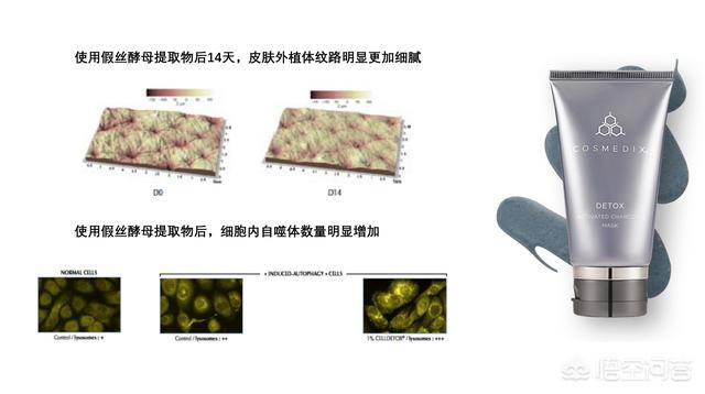 1, Extrait hydrolysé de levure Pseudomyces ----SILAB formule brevetée CELLDETOX ingrédients de base, est une bonne promotion de l'autophagie cellulaire extraits biologiques. Il a été constaté que cet extrait peut promouvoir de manière significative la production de lysosomes autophagiques, accélérer l'élimination des vieilles protéines des cellules de la peau, activer le système antioxydant cellulaire et obtenir l'effet dit "détox". Vous pouvez trouver le masque détox de Cosmedix dans les produits qui sont positionnés pour avoir un effet "détox".
