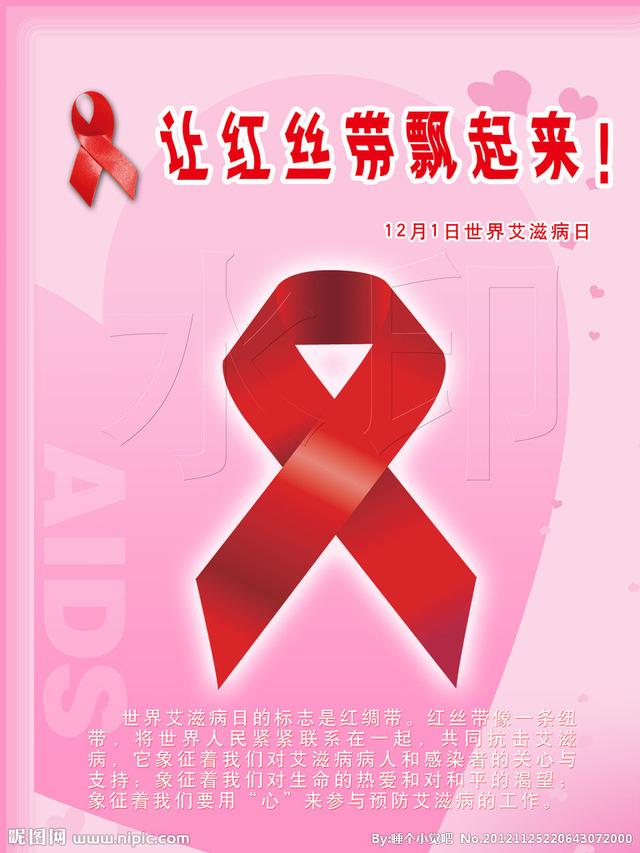 Le ruban rouge est un symbole international de sensibilisation au VIH et au sida, représentant le soutien aux personnes vivant avec le VIH, à la formation continue pour ceux qui ne sont pas infectés, à tout ce qui est possible pour trouver des traitements et des vaccins efficaces, et à ceux qui ont perdu des êtres chers à cause du sida.