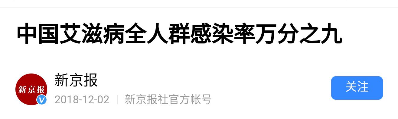 À la fin de l'année 2018, le taux d'infection par le sida en Chine était de neuf sur 10 000. À l'heure actuelle, les risques d'infection des groupes à haut risque tels que les homosexuels, les personnes ayant des relations sexuelles impures et celles qui sont en contact avec des produits sanguins sont très élevés, tandis que les risques d'infection de la population en général sont relativement faibles.