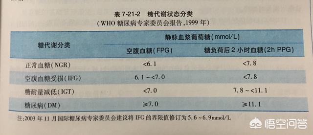 En général, si la glycémie à jeun dépasse la limite supérieure de la valeur normale de 6,1 mmol/L, mais n'a pas dépassé le seuil de détermination du diabète de 7,0 mmol/L, on parle d'"anomalie de la glycémie à jeun", tandis que dans la mesure de la tolérance au glucose, si la glycémie postprandiale de 2 heures dépasse la limite supérieure de la valeur normale de 7,8 mmol/L, mais n'a pas dépassé le seuil de détermination du diabète de 11,1 mmol/L, on parle d'"anomalie de la tolérance au glucose". Si la glycémie postprandiale de 2 heures dépasse la limite supérieure de 7,8 mmol/L, mais ne dépasse pas le seuil de détermination du diabète de 11,1 mmol/L, on parle d'"anomalie de la tolérance au glucose". Une anomalie de la glycémie à jeun, une anomalie de la tolérance au glucose, ou les deux, sont considérées comme des états prédiabétiques.